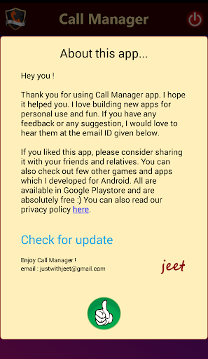 I initially built this app for my own use. A good sleep is very important for our health. So I always keep my phone in silent mode while sleeping. But I also carry a big worry while the phone is silent. In case there is an emergency in my family, I will not be able to know. They will keep calling me on my phone, but in vain. I have been searching for such an app which can give me the flexibility to handle various different type of calls while I keep the phone silent (during sleeping or driving etc). The default settings in Android does give us a similar feature, but the functionality is very limited there. I could not get any existing app that fulfills my need sufficiently, and hence I thought of building an app myself. Once there, I realized the value it can add to other's life as well. So I decided to publish it in playstore. If you find this app useful, please feel free to let me know. A nice message from you will certainly encourage me to work on similar projects in future.
