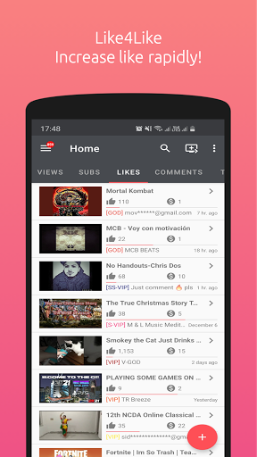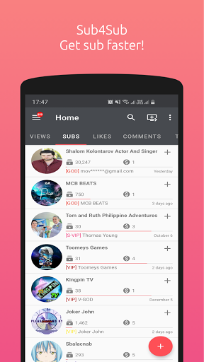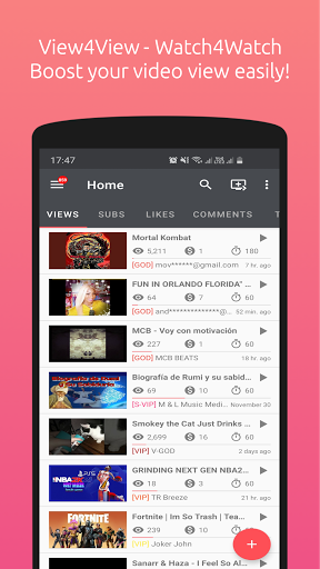 View4view, sub4sub, like4like and comment4comment are the ideas on which this app runs. By helping each other, all users in this app will grow together!