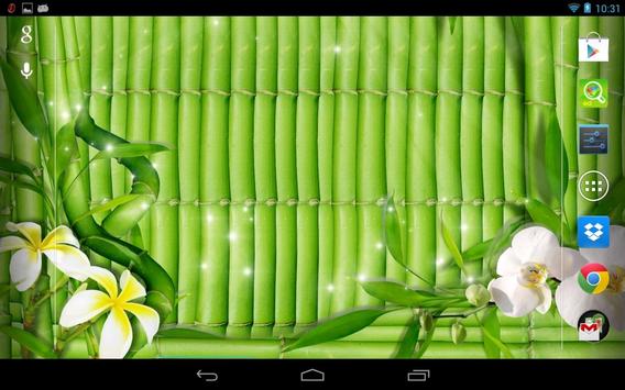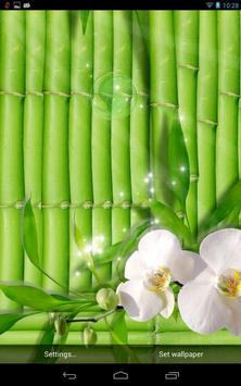 Green elegant live wallpaper. These contrasting and very beautiful wallpaper look very fresh. Orchid flower, lily, bamboo, green bubbles and patches of light give an elegant, delicate look to your phone!