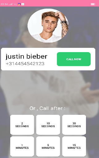 Call from justin bieber is an application for prank your friends because you will get a call from justin bieber such as a real calling from real justin bieber in the first time in your phone. call from justin bieber is an app for stuffing your friends.