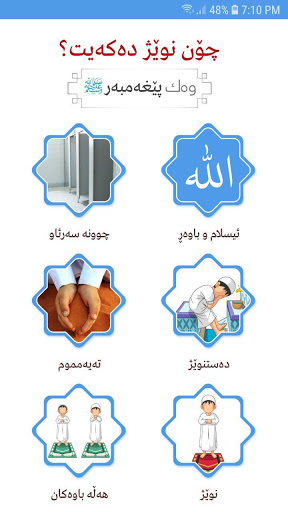 ئەم ئەپلیکەیشە تەواوی پێویستیەکانی نوێژی تێدا ڕوون کراوەتەوە وگرنگە بۆ هەموو کەس کە بیخوێنێتەوەو شارەزای تەواوی نوێژەکەی بێت. نوسینی: مامۆستا محمد نوری و مامۆستا علی تحسین.
