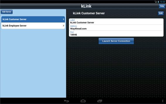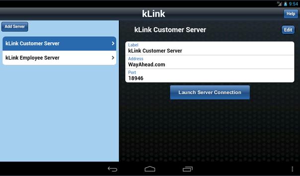 kLink Mobile launches and stores kLink server URLs.