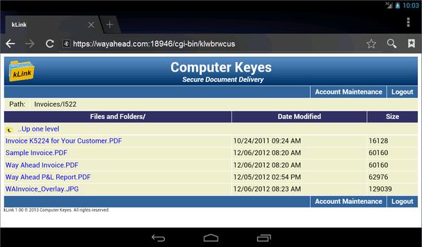 kLink is distribution software for the IBM i (iSeries, AS400) that allows users to securely login and view or download documents that have been made available to them on the Integrated File System (IFS).
