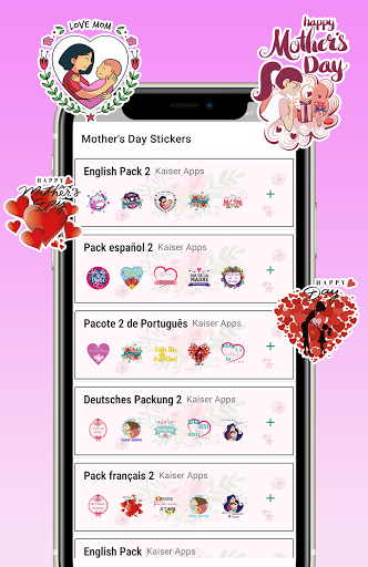 contains the best Mother's Day Stickers so you can congratulate her in many different and original ways and also, you have multilingual stickers to that you can congratulate in the language that you want. The available languages are:
