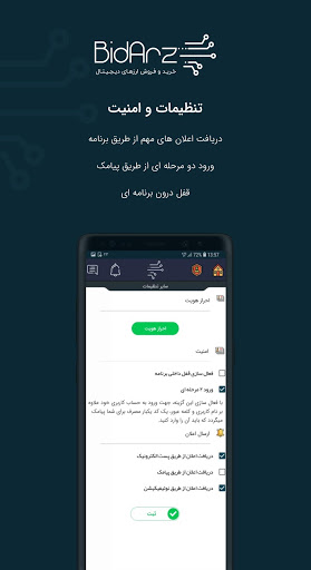 - امکان فعالسازی قفل درون برنامه ای از طریق کد و اثر انگشت