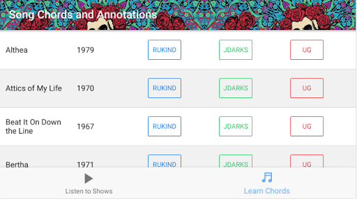 Learn the chords and lyrics of your favorite Grateful Dead songs with ready to go links to RuKind, JDarks, and Ultimate Guitar