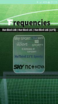You can find in our app All Hot Bird 13B / Hot Bird 13C / Hot Bird 13E at 13°E Frequencies , For the sports and football channels ( All Countries).