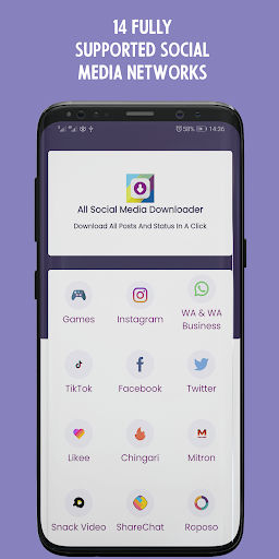 All Social Media Downloader is the best social media posts and status downloader. It features a professional quality interface, great user experience and support for a wide range of social networks. The app can download content from Facebook, WhatsApp, Instagram, TikTok, Mitron, Josh, MX Taka Tak, Likee, Chingari, Snack Video, ShareChat and Roposo.
