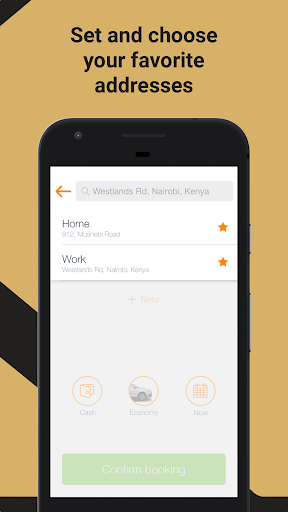 - Create favorite addresses anywhere in Kenya and Somalia. to speed up cab orders