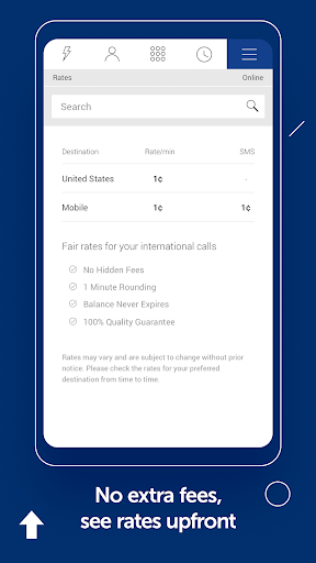 *Check what’s the rate/min for the destination you want to call in our Rates menu.
