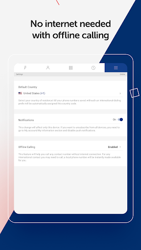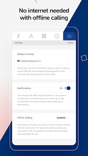 NEW! Offline Calling - this feature is meant to allow app users to connect calls without Internet connection WiFi or 3G/4G-LTE, through local access numbers.