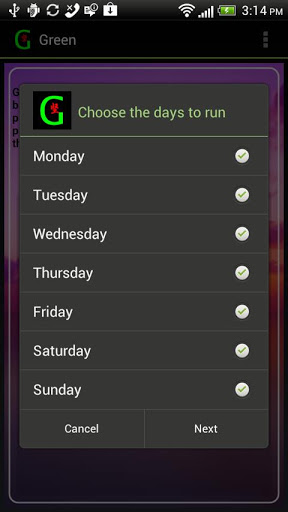 Choose the days to run