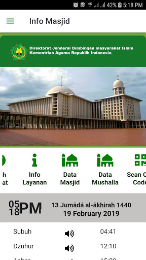 Applikasi Info Masjid Memberikan Informasi Tentang Jadwal Shalat, Arah Kiblat, Data Masjid Terdekat, Data Masjid Seluruh Indonesia, Informasi Seputar Departemen Kementrian Agama.