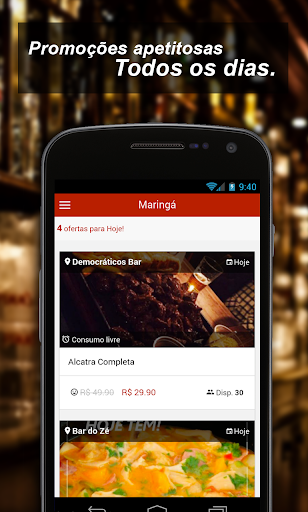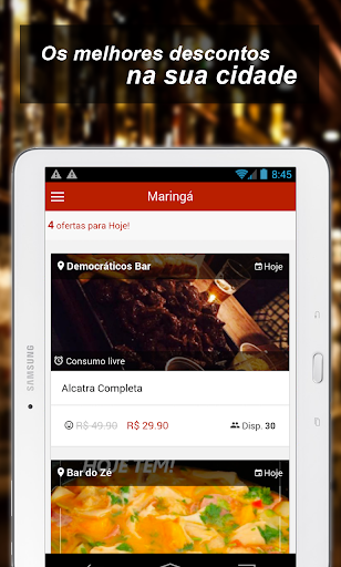 Fácil e rápido, basta baixar o aplicativo se cadastrar ou entrar com sua conta da rede social escolher a promoção e gerar o seu cupom, não precisa imprimir nada, pois o sistema irá gerar automaticamente o número de seu cupom, basta apresentar esse código ou o voucher ao estabelecimento na hora de fechar a conta.