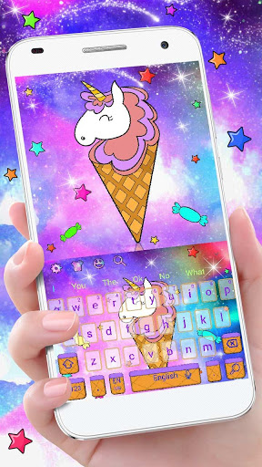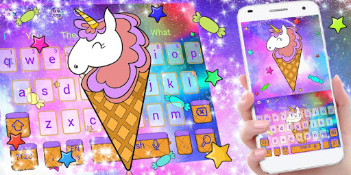 Galaxy Cute Unicorn Ice Cream Keyboard Theme is an amazingly shiny galaxy background Keyboard Theme2018 app for phones and tablets that has many SMS Themes keyboard skins for you.