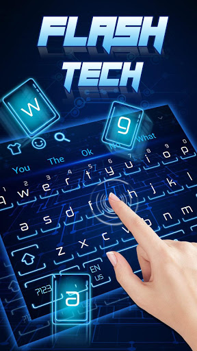 Flash Tech Hologram Keyboard Theme is an amazingly neon blue background Keyboard Theme2018 app for phones and tablets that has many SMS Themes keyboard skins for you.
