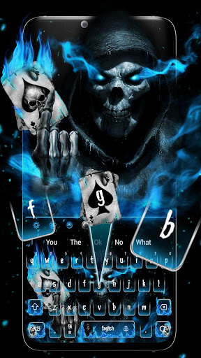 👻 Download Horrible 3D Fiery Poker Skull Keyboard With Blue Wallpapers, tap the INSTALL button.