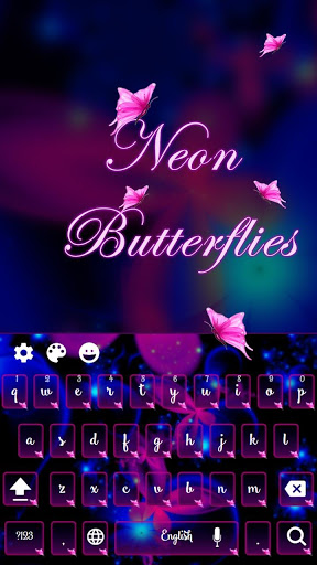 Neon Butterflies Purple keyboard support typing by recognizing your voice and speech. We aim to create the best keyboard, so we believe both fascinating user interface (e.g., stylish and flare design) and useful functions (e.g., auto words correction, smart words prediction, speech to text, etc.)