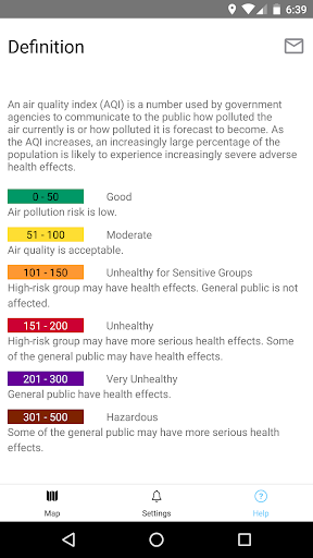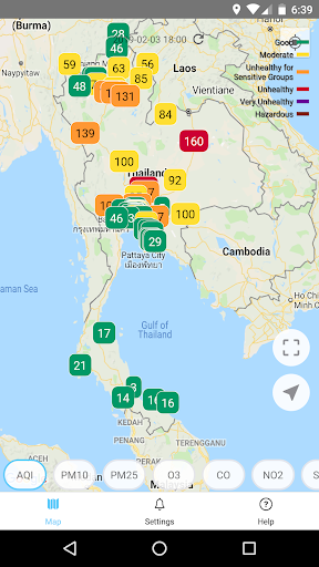 We provide realtime AQI as well as the pollutant concentration of NO2, O3, SO2, CO and PM10.