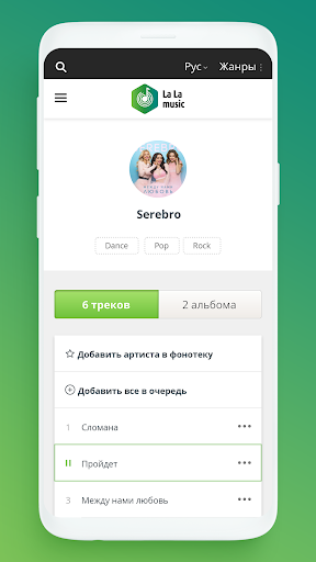 सेवा "ला ला संगीत" का उपयोग करें और जहां भी आप अपनी पसंदीदा रचनाओं को सुनें!
