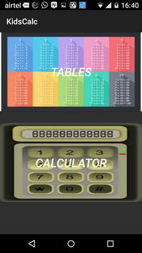 First it displays 1-20 tables for kids to practice and master them. It also has a calculator for basic mathematical functions to be used by kids.