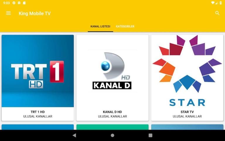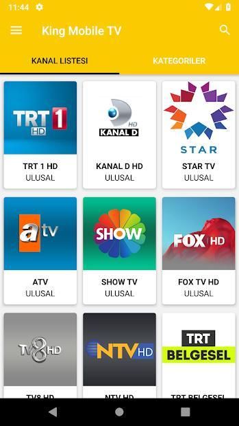 King Mobile TV; Kullanıcılarına hd canlı tv izleme imkanı sunmaktadır, 100'den fazla yerli, yabancı, çocuk, sinema, spor ve dini televiz yon kanalını mobil cihazlarınızda izleyebilmeniz için imkan sağlamaktadır.