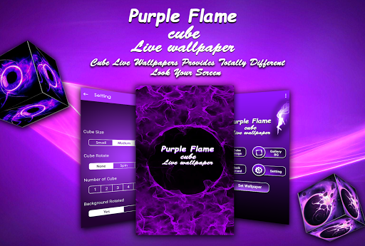 Purple Flame Cube live wallpaper gives the distinctive 3D purple flame cube live wallpaper. This application enabled you to set diverse pictures on each side of cube from exhibition, include distinctive impacts and edges.