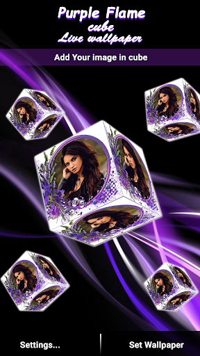 Purple Flame cube live wallpaper provides different and amazing 3D cubes for making live wallpaper. Purple Flame Cube Live Wallpaper features a rotating 3d cube showing pictures and photos from your gallery.
