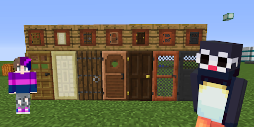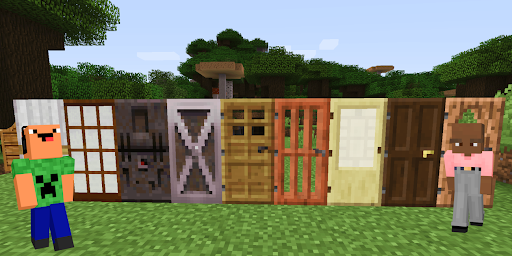 In order for you not to think about such trifles as doors to your incredible building, the developers have created an add-on. A huge collection of doors of various shapes, colors and materials. All models are made in HD quality. Choose something that suits your interior and your creative idea. The main thing is not to limit yourself and enjoy the gameplay!