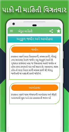 È possibile ottenere informazioni affinanti relative informazioni relative all'infinito, procedura di agricoltura, coltivazione coltivazione, informazioni sulla malattia del raccolto, tasso di metro, linee guida agricole, ecc. La lingua dei Gujarati.
