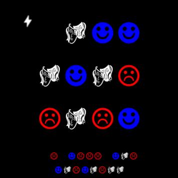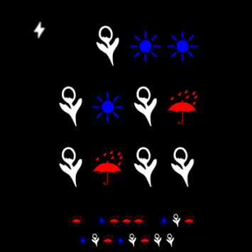 Tapping on the bottom left and right sides change character sets in a like manner to the color schemes. The random toggle and modes are right of the position for the always rock-paper-sissor characters and left of the position for always ¬ , ☯, 1 position. The display in the random positions is random and may display the same schemes as the boundaries. Play with it.