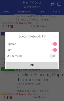 è possibile visualizzare il palinsesto televisivo dei Film in programmazione oggi e nei successivi 7 giorni nelle reti televisive Italiane gratuite e a pagamento.
