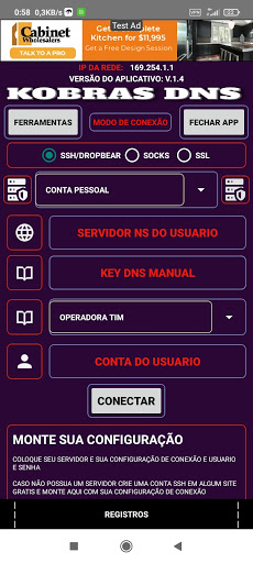 Aplicativo de navegação VPN LIVRE via DNS • TIPOS DE CONEXÕES • DNS SSH/DROPBEAR • DNS SOCKS • DNS SSL O aplicativo está em fase de testes ! Qualquer dúvida entre no canal oficial do KOBRAS no telegram