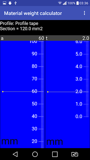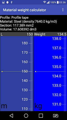 Calculation of the cross-sectional area, volume and mass of the profile for various materials.