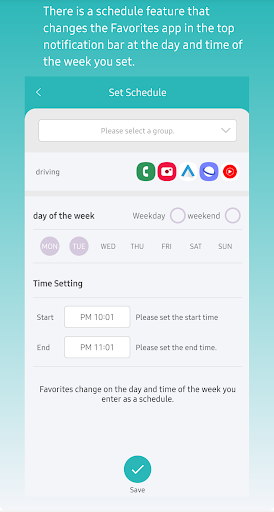 3. Schedule functionality automatically changes to groups set in the desired day and time zone (08:00 ~ 08:50 driving schedule,