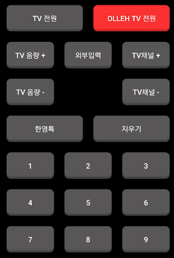 적외선 센서가 지원되는 스마트 기기의 Olleh(올레) tv 리모콘 지원 어플리케이션입니다.