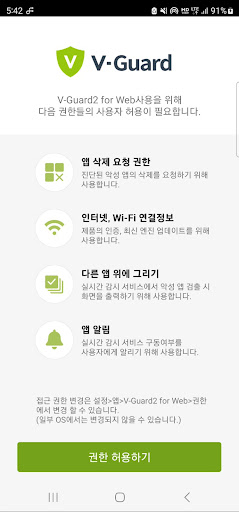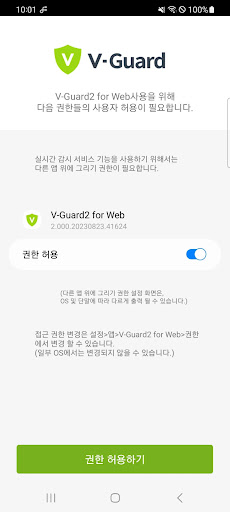 • Android 6.0 o posterior: Configuración y GT;Aplicación o aplicación y gt;V-Guard para web & gt; seleccione Acuerdo o retiro de la selección.Por lo tanto, le recomendamos que actualice el sistema operativo del terminal que está utilizando para Android 6.0 o posterior.Sin embargo, incluso si se actualiza el sistema operativo, los permisos de acceso acordados a la aplicación existente no cambiarán, por lo que para restablecer los permisos de acceso, debe reinstalar después de eliminar la aplicación ya instalada.