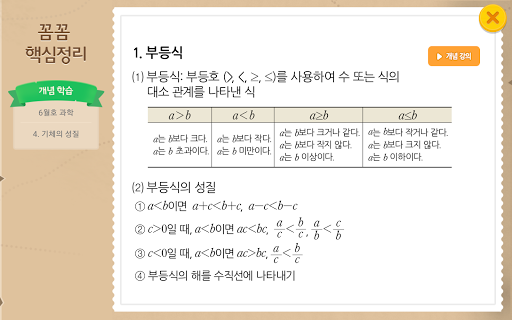 - 개념을 학습하다가 잘 이해되지 않는 부분이 있으면, 오른쪽의 개념 강의 버튼을 클릭하여 개념 강의 영상을 볼 수 있습니다.