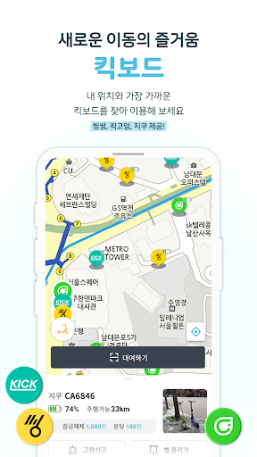 2. 킥고잉 킥보드가 추가되었어요! 티머니GO 킥보드에서 씽씽, 지쿠, 킥고잉 중 내 위치에 가장 가까운 킥보드를 대여해 보세요.