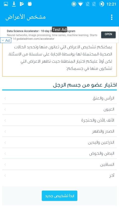 1. قوموا بتحديد منطقة الشكوى بالجسم المطلوب تشخيصها