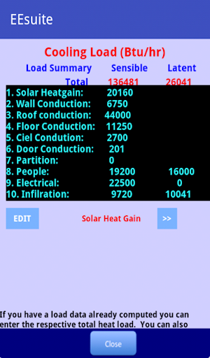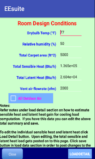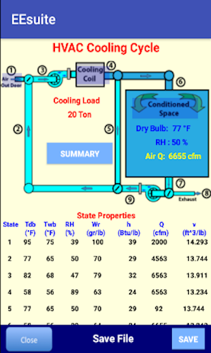 Model covers outdoor air, fan-coil, conditioned space and return air. App helps determine total cooling load under 10 different categories as per ASHREE guide lines The model presents humid air property data of each state and evaluates total cooling load and fan-coil system performance.