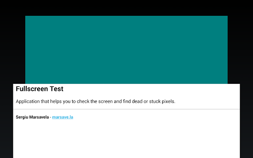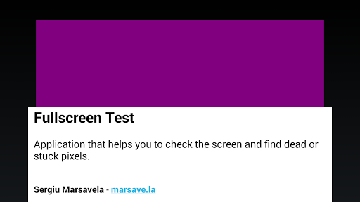 Test your display after dead or stuck pixels. A lot of new devices came with this kind of failing and you don't even notice. The application fills the screen, even the on screen navigation bar, with a single color at maximum brightness, allowing the user to easily find pixels that fail to show the certain color.