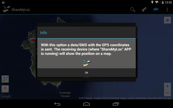 - SMS data message, allowing the receiving device (were this App shall be running) to visualize the position on map;