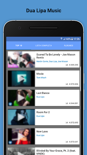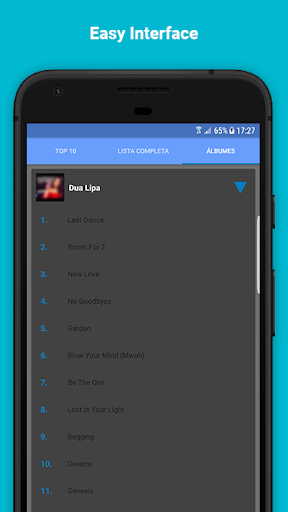 Con esta aplicación, no sólo tendrás toda su música en el móvil. Sino también la mejor información actualizada sobre la cantante. Estamos trabajando para que tengas siempre lo mejor de su carrera musical y además, de manera rápida y sencilla. El diseño de la app está creado para que su manejo sea sencillo y no tengas que estar dando vueltas para dar con una canción. Está creada para que escuches lo que quieras escuchar, sin interrupciones. Así que únete a la ola de Dua Lipa y escúchala donde quiera que vayas.