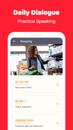 It provide various topics like greeting, traveling, shopping, etc…. It's suitable for Chinese learners to practice speaking Chinese.