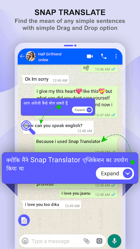 can translate English to Hindi or any other languages like English to Arabic translator and many other. Using this application, user can translate any text into their native language to easily read, chat with foreign language persion.