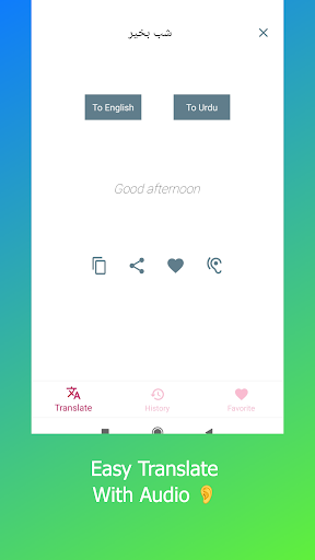 Translate text, word or sentence from Urdu to English or from English to Urdu language. You can use this apps as a Urdu to English dictionary or English to Urdu Dictionary too.
