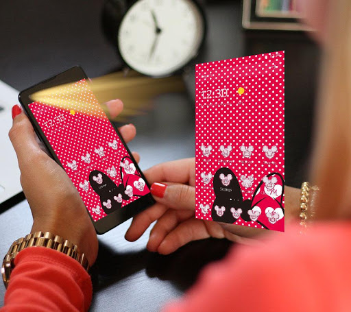 Get this red diamond Minnie bow theme now free for Android phones. Red Diamonds Minnie Bowknot theme gives you a lovely Minny feel for the love of Disney fairy tale world kawai girl. Get a sweet Valentine's Day gift for your girl and get this nice pink mini bow theme now get a romantic funny Valentine's Day memory.