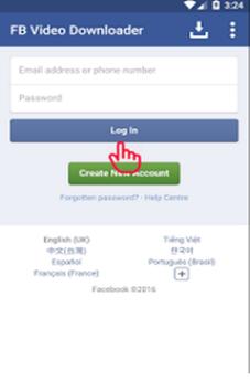 Downloader de vídeo para Facebook permite que você navegue sua conta do Facebook, suas notícias sem fio e parede dos seus amigos ou páginas que você siga com um navegador integrado que permite que você selecione o vídeo que deseja baixar e guardá-lo para que você possa vê-lo mais tarde e compartilhar com seus amigos através de várias aplicações.