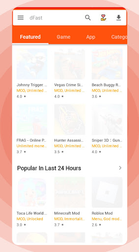 dFast apk mod app helper includes the following options: